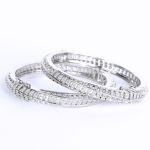 These gold-toned bangles feature an intricate design, adorned with sparkling stones that catch the light with every movement. Delicate chains dangle gracefully, adding a touch of playful elegance to the set. These bangles are perfect for adding a luxurious and sophisticated touch to any ensemble, suitable for both special occasions and elevating everyday style.
