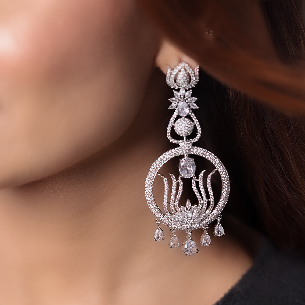 Add a radiant touch to your festive and formal looks with the Brilliance Buds Earrings. These finely crafted earrings feature delicate zircon details, making them ideal for Eid celebrations, dawats, and wedding wear. A perfect choice for women seeking elegant party wear earrings that sparkle effortlessly.