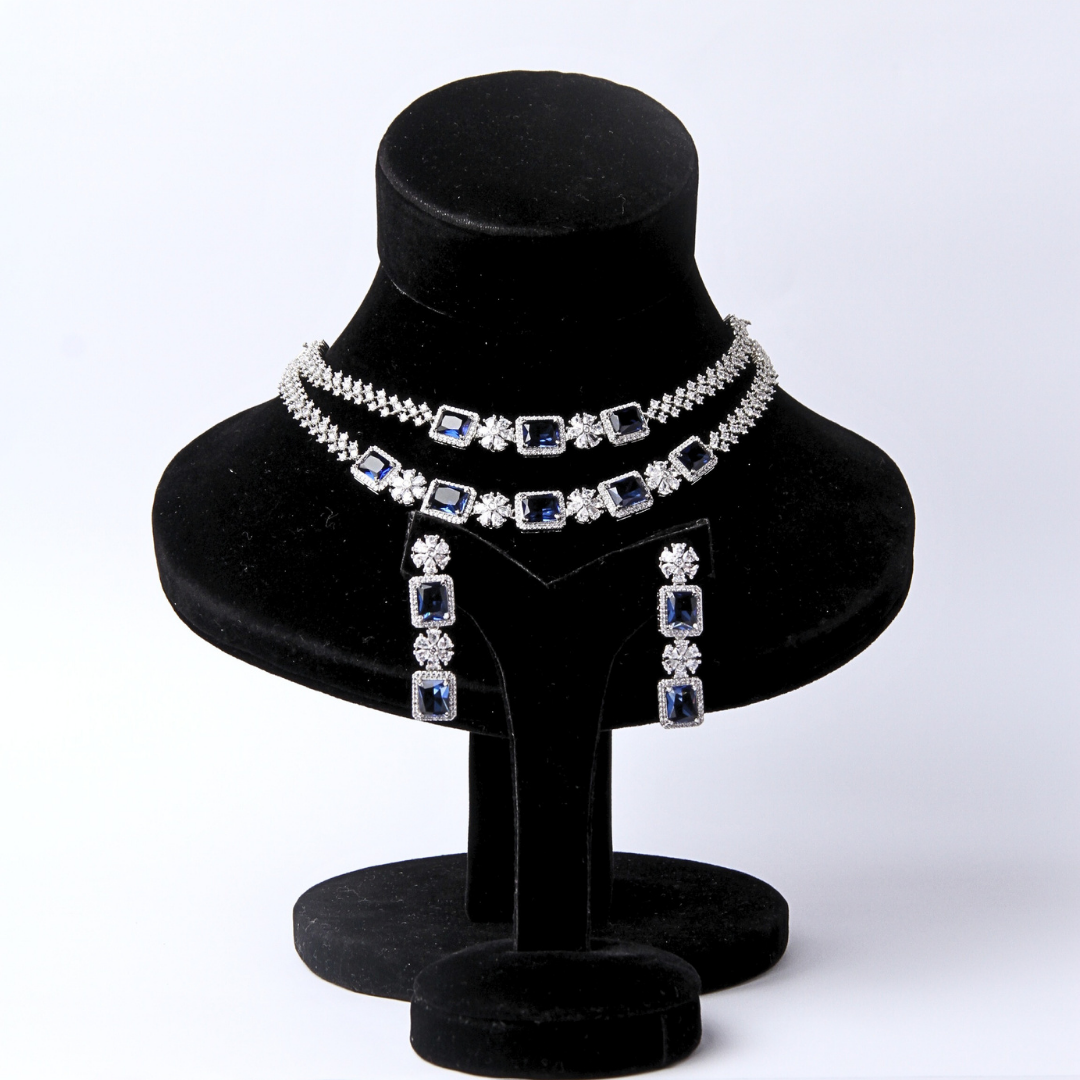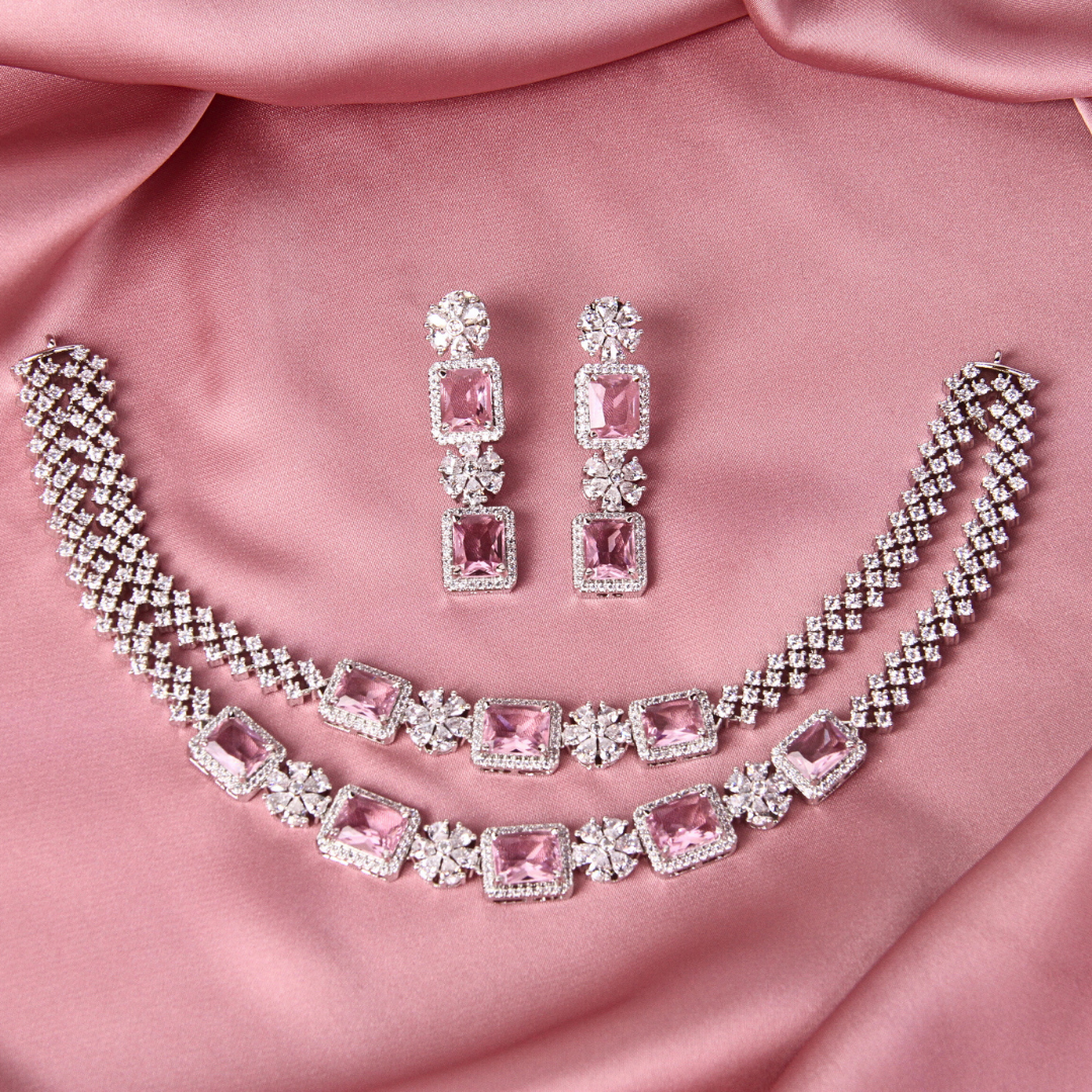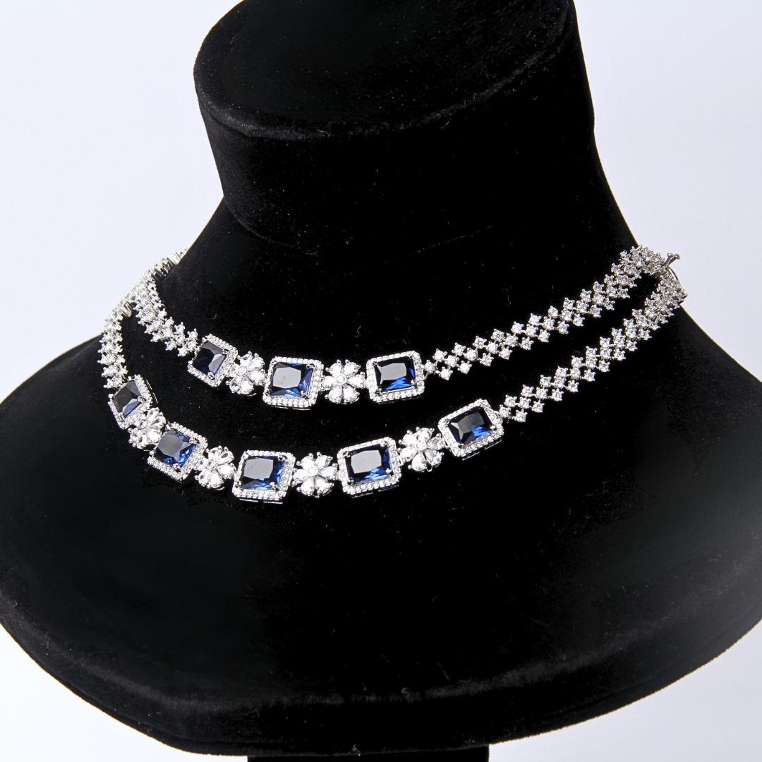 Turn heads with the Luminous Zircon Set, featuring a double-layered necklace adorned with high-quality zircon stones. Ideal for party wear jewelry, this exquisite set is perfect for adding a touch of elegance to gatherings or wedding ceremonies.