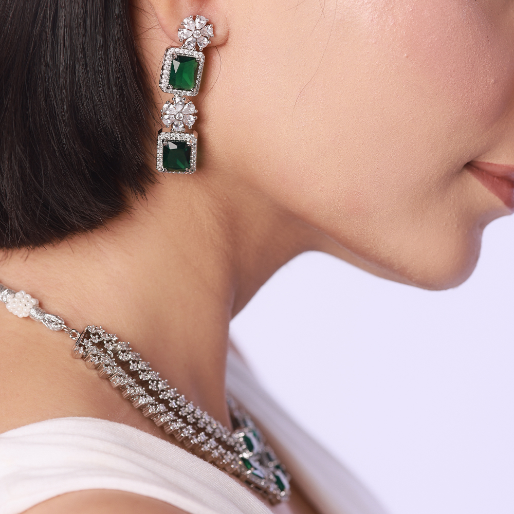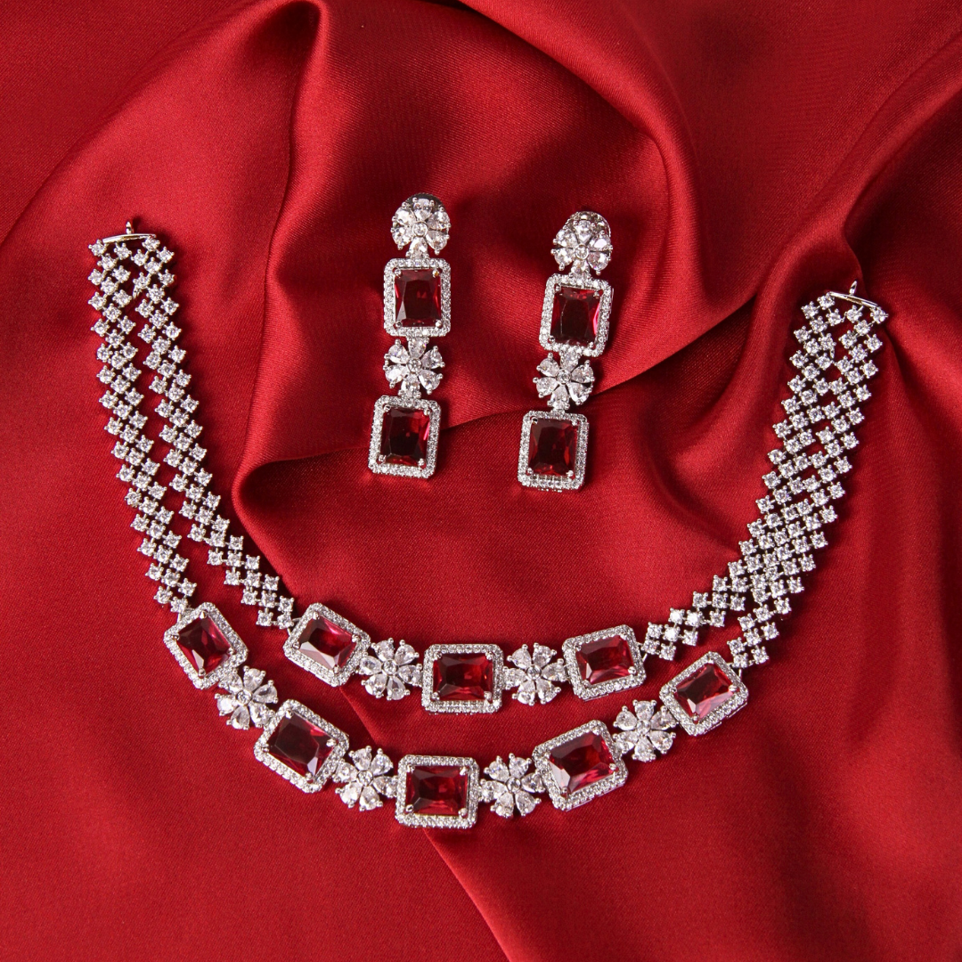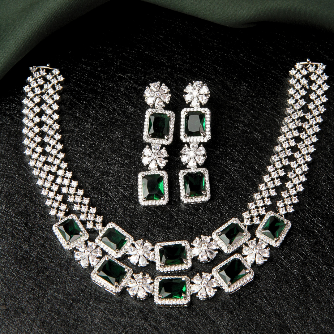 Turn heads with the Luminous Zircon Set, featuring a double-layered necklace adorned with high-quality zircon stones. Ideal for party wear jewelry, this exquisite set is perfect for adding a touch of elegance to gatherings or wedding ceremonies.