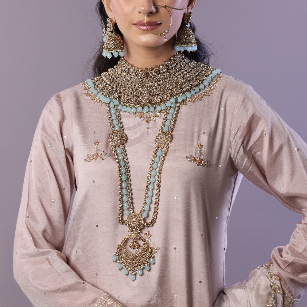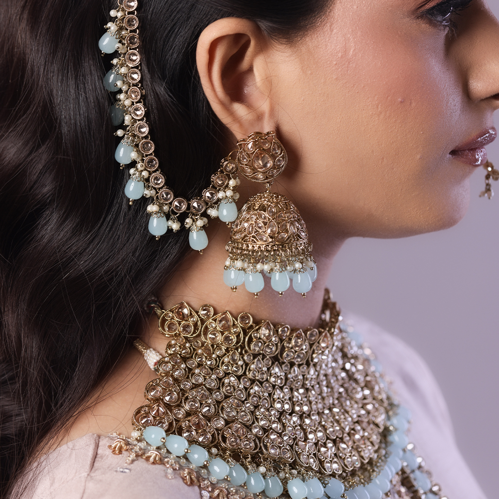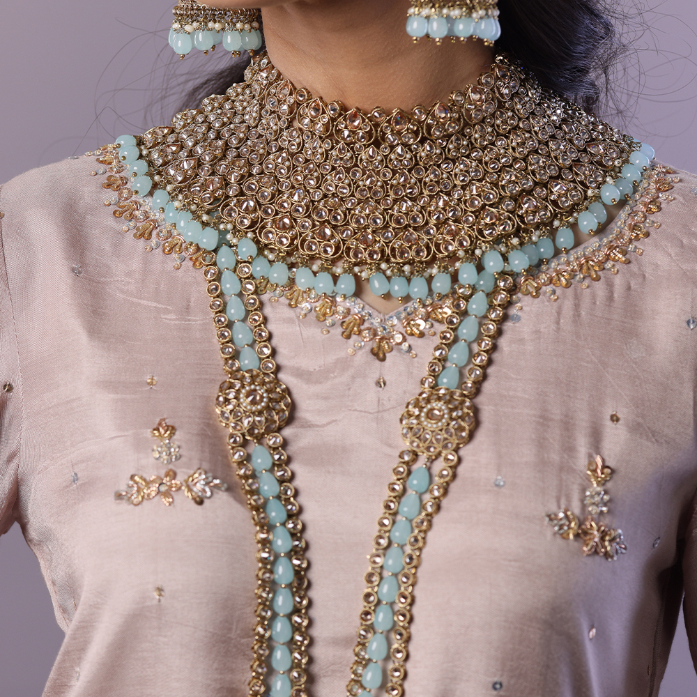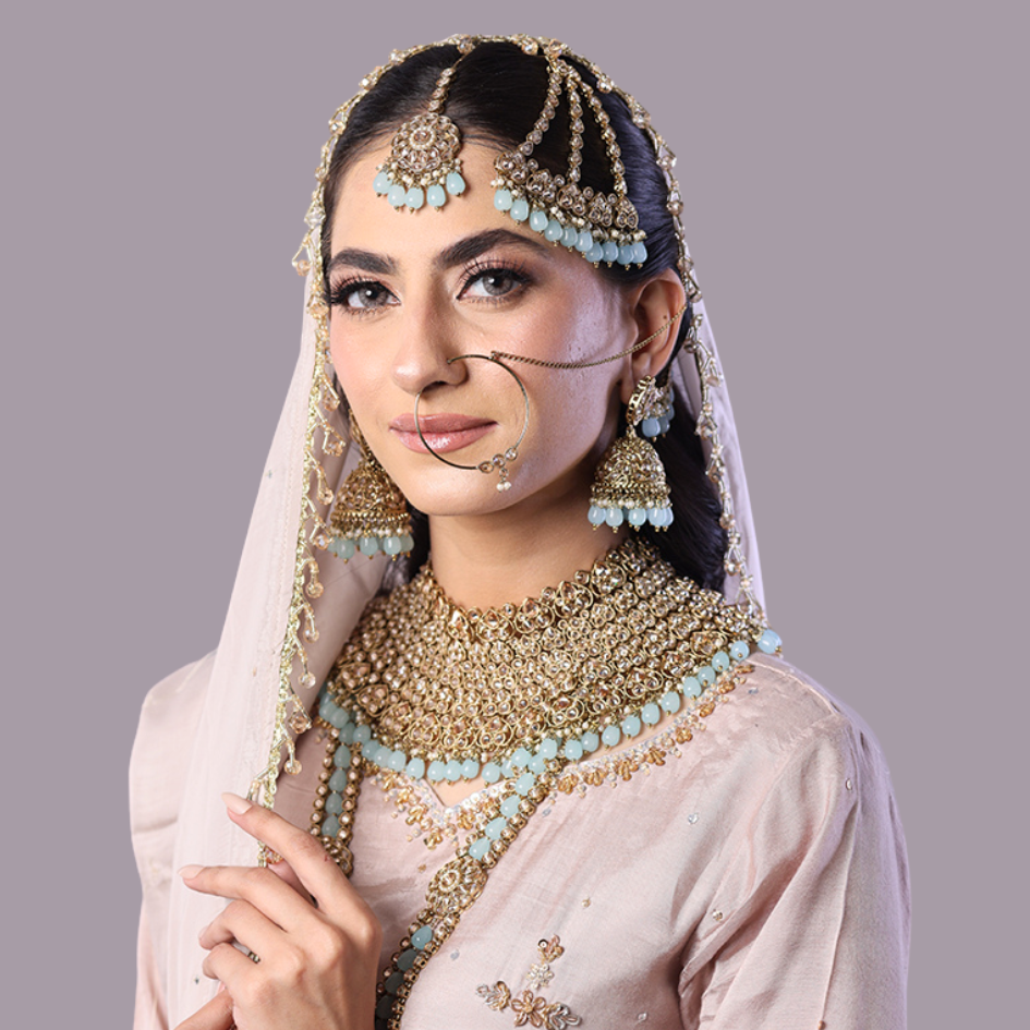 Designed to enhance your bridal look on the occasion of barat, walima, mehendi or mayun, our collection features intricate detailing, including zircon, reverse AD, pearls and kundan accents, making them the epitome of the best artificial jewelry in Pakistan.