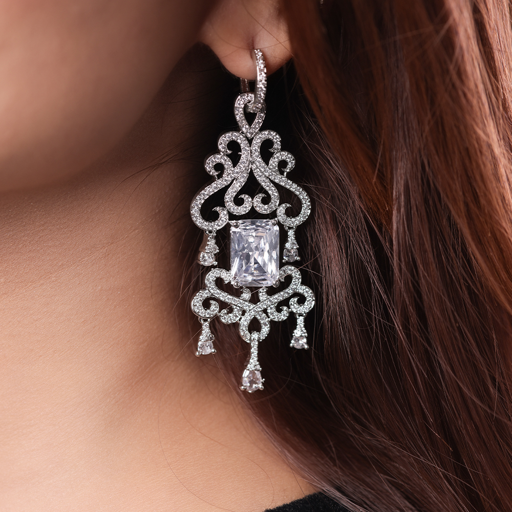 Shine bright with the Zircon Zeal Earrings, featuring meticulously crafted zircon stones that exude brilliance. These versatile earrings are perfect for Eid celebrations, wedding wear, or as dazzling party wear jewelry for special occasions.